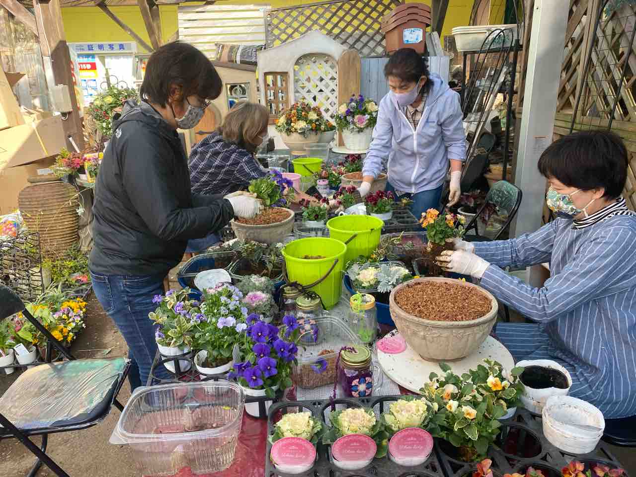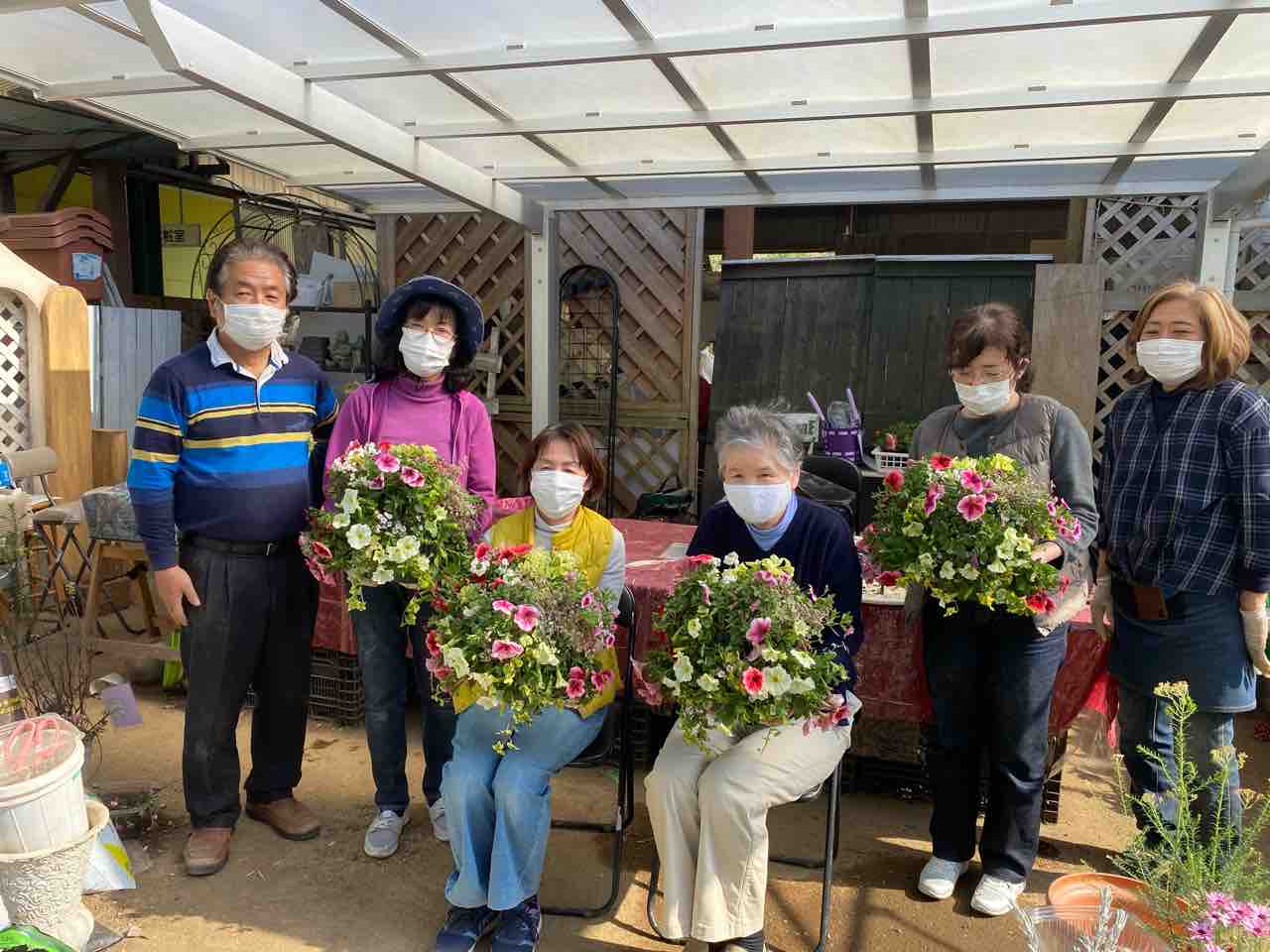 画像は川根町役場での花の会中心の参加者での花作り講演会後の''寄せ植え講習会''の時のものです。