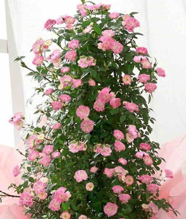 ☆ミニバラ「四季咲きレンゲローズ」をリング状に仕立てて、アイアンスタンドを付けた''ウェルカムローズ''という商品